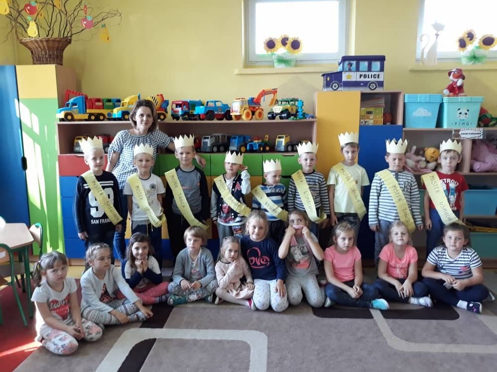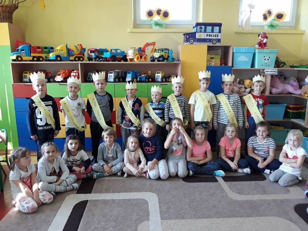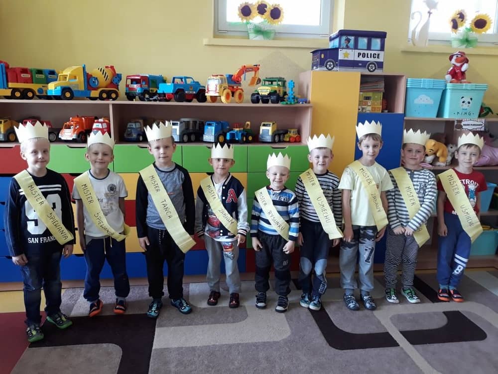 Od najmłodszych lat uczymy dzieci, aby pamiętały o ważnych uroczystościach w domu oraz w życiu naszej placówki. W naszym przedszkolu jedną z takich uroczystości jest Dzień Chłopaka. W tym dniu dziewczynki i panie złożyły chłopcom najlepsze życzenia. W grupie starszaków w ten szczególny dla naszych chłopców dzień, zorganizowaliśmy sobie „wybory mistera”. Tak jak w przypadku prawdziwych wyborów, tak i u nas - odbyła się „koronacja”, każdy chłopiec był misterem w innej kategorii i został przepasany pamiątkową szarfą. Po tej „ceremonii” wszyscy dobrze bawili się przy muzyce. Nie zabrakło także w tym dniu słodkiego poczęstunku oraz upominków dla wszystkich dzieci.