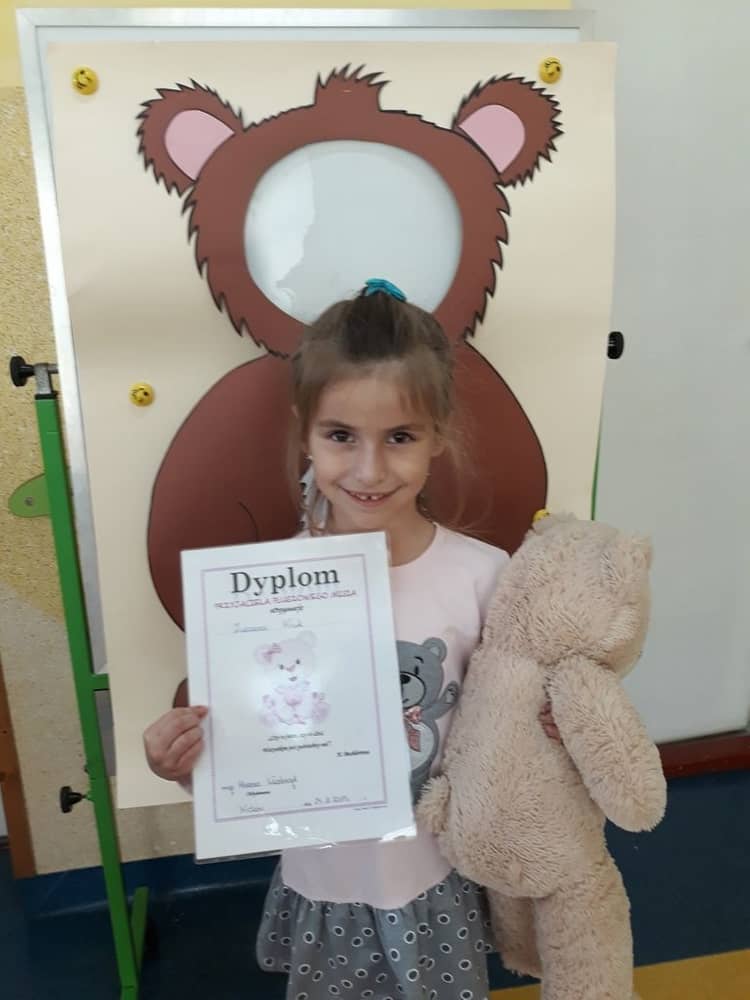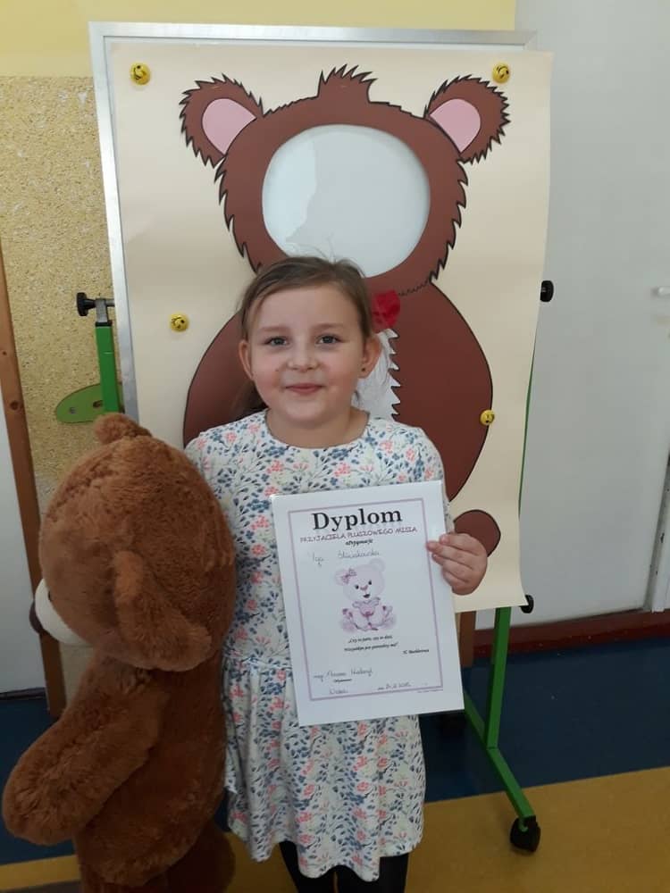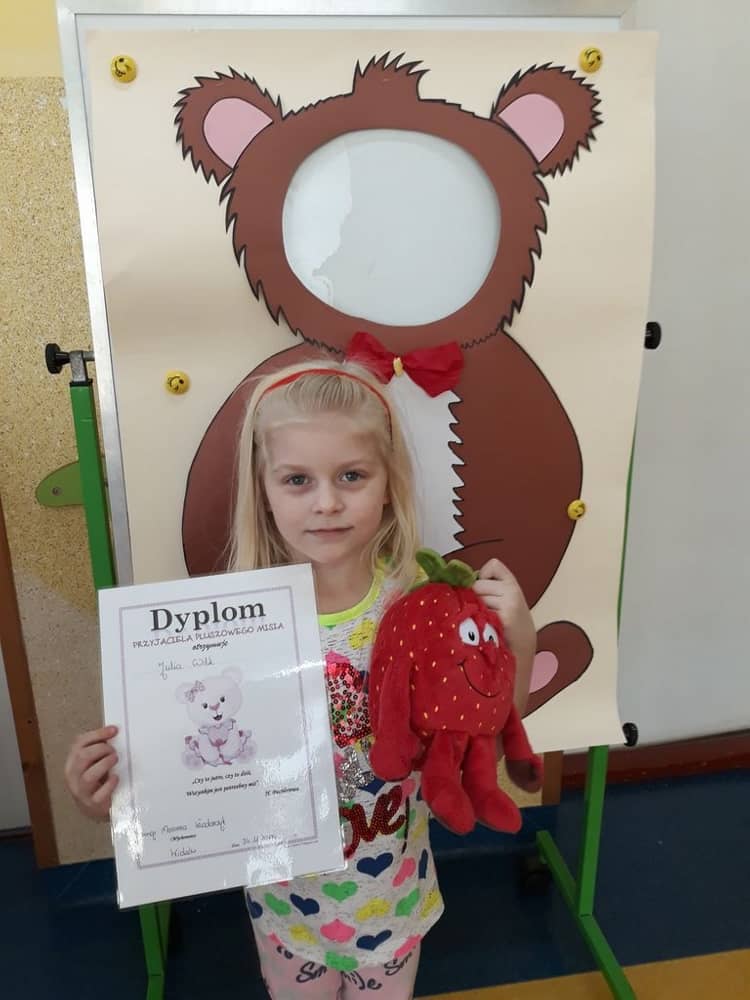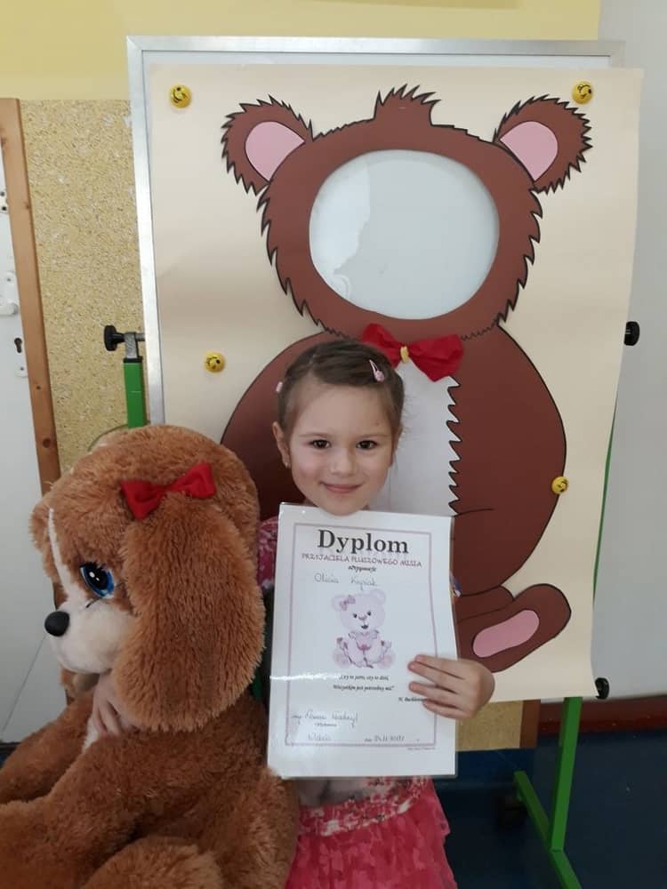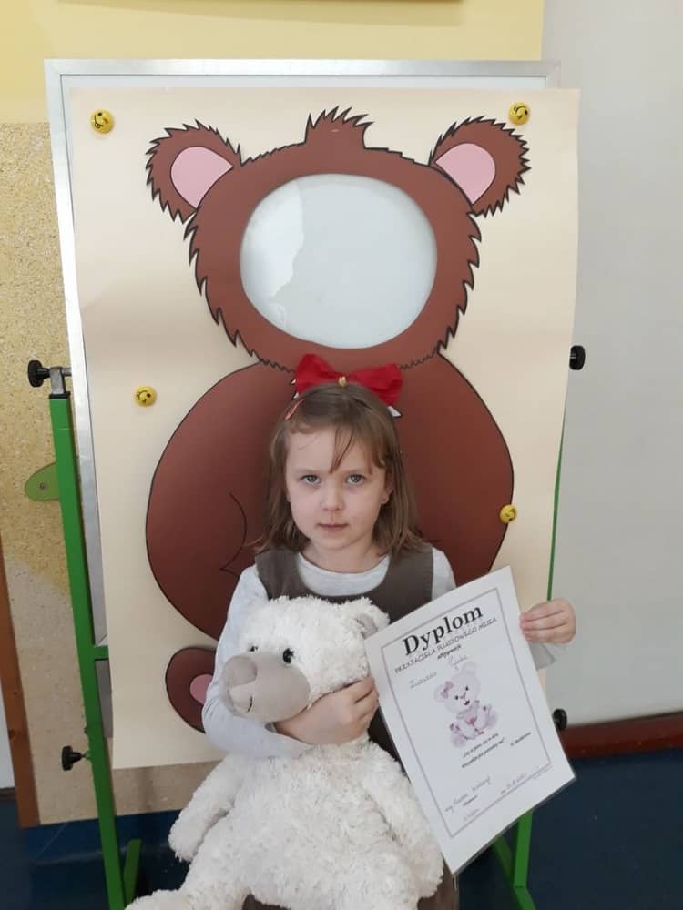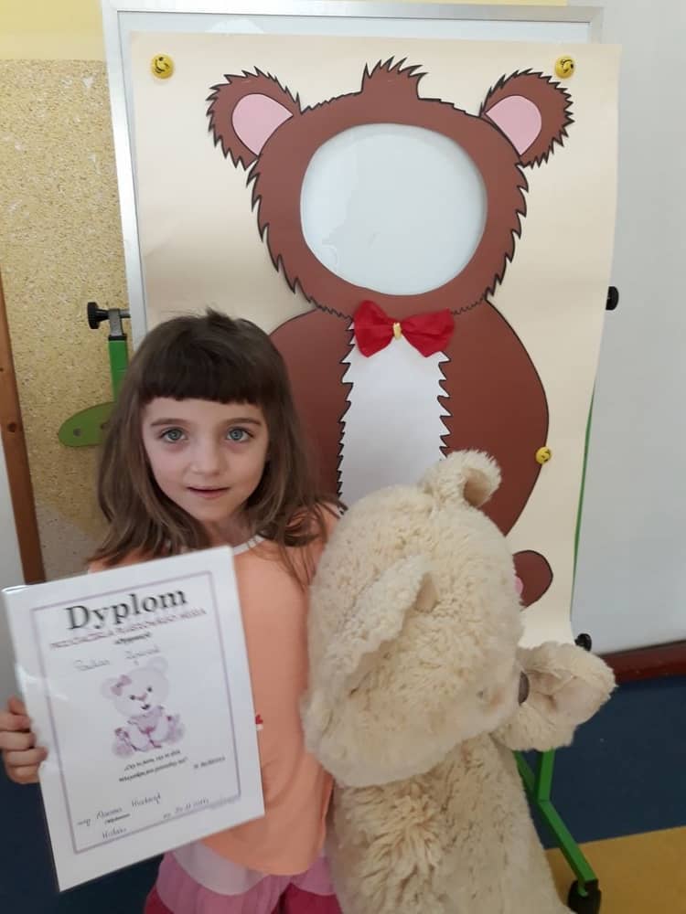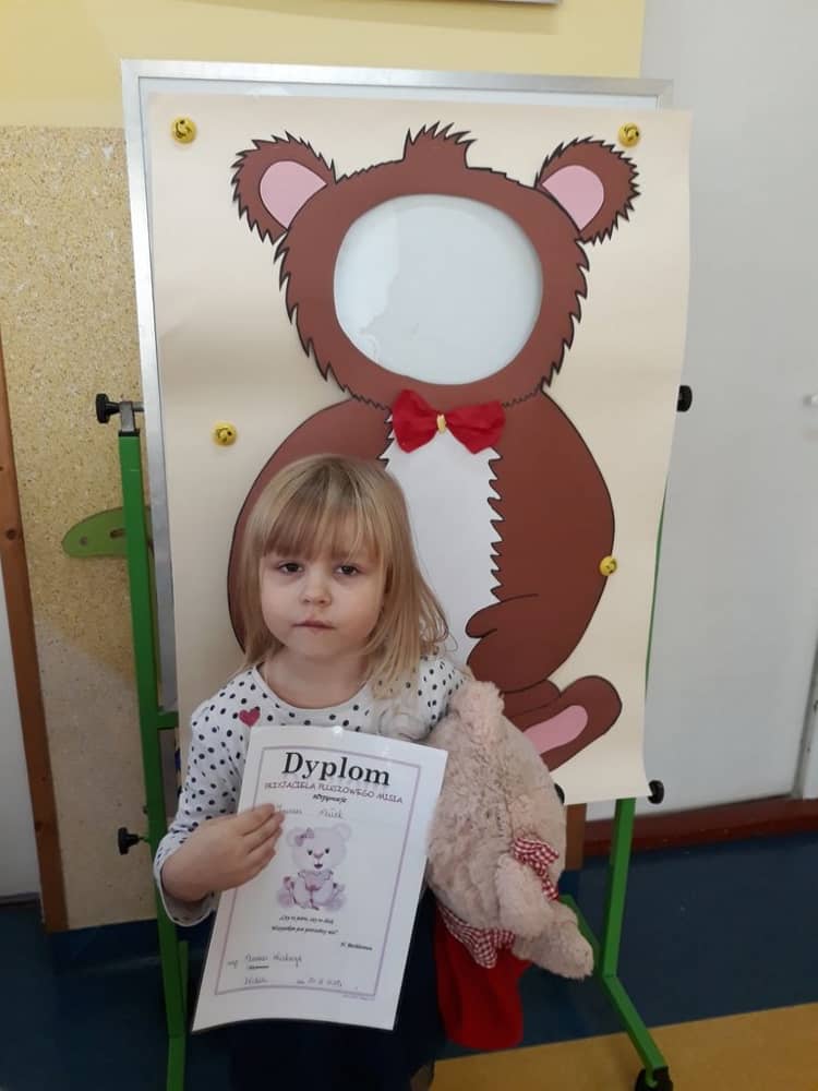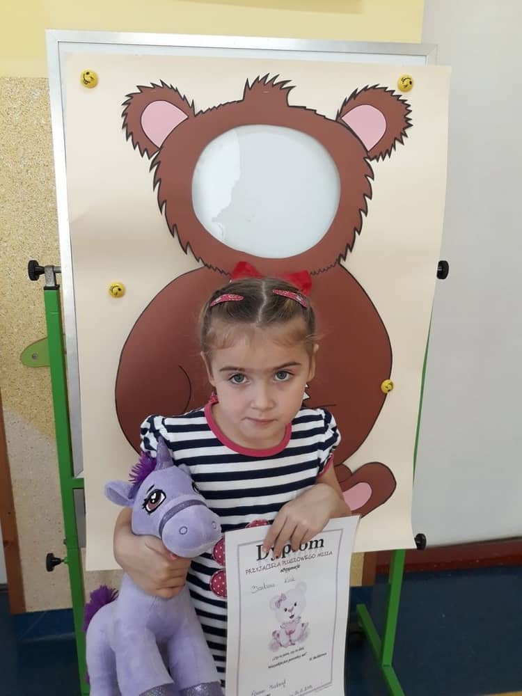 Ciekawą atrakcją była też przygotowana przez nauczycielkę fotobudka misiowa w której dzieci mogły zrobić sobie zdjęcie. Na koniec wszystkie dzieci dostały od wychowawczyni dyplom „Przyjaciela Pluszowego Misia"