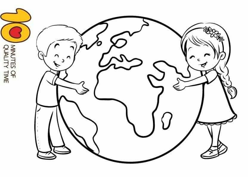 - Pokolorujcie rysunek kuli ziemskiej (Załącznik 1)